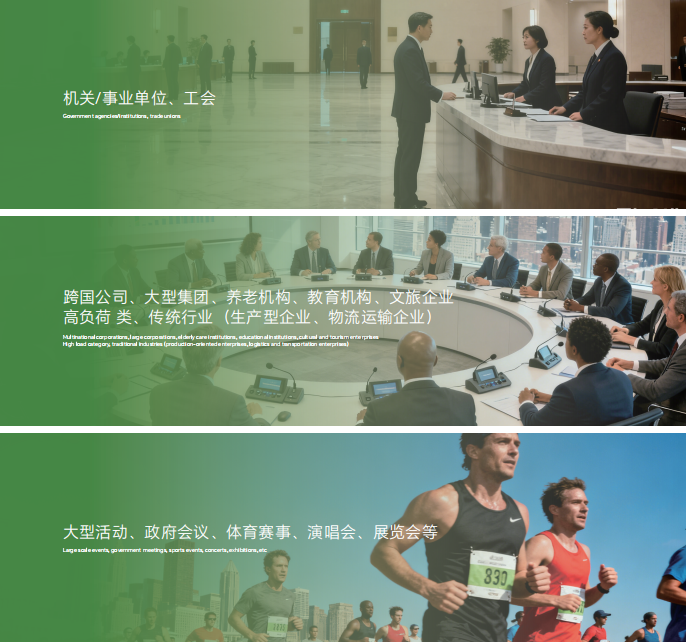 除此之外,针对机关/企事业单位人员健康、厂区职工职业健康、景区/游乐场/大型活动赛事医疗安全保障等多元化需求,平台也开发和提供针对性医疗派遣服务能力,实现多场景全覆盖,彰显专业实力。