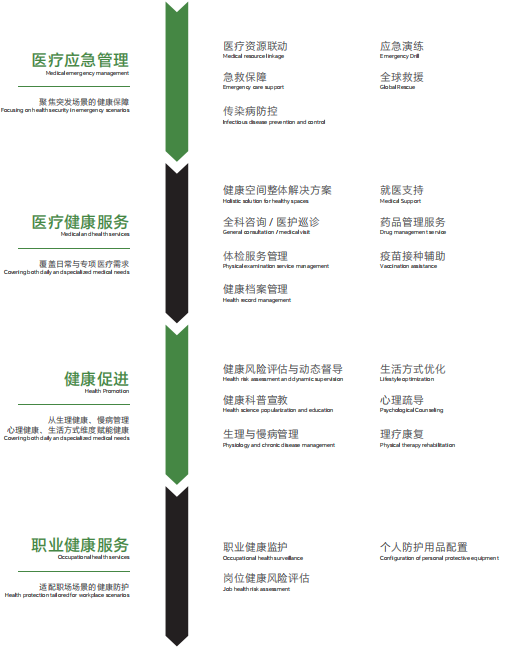 三山医伴从应急管理、健康服务、健康促进、职业健康等多方面着手,构建全方位医疗派遣服务能力矩阵,全面覆盖校园日常及专项医疗需求,为校园健康提供全流程支持。