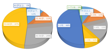 以北京市房山区零工市场今日东方为老服务中心为例,2073名养老护理人员中,女性占比逾六成,超七成的养老护理员在41-60岁区间,从业年限在1-2年的占比近一半。