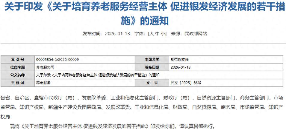 1月13日,民政部等八部门联合印发《关于培育养老服务经营主体 促进银发经济发展的若干措施》,其中“促进养老服务市场化供需对接”版块精准发力,为老年陪诊、护理等细分领域送来政策东风,行业发展再添新机遇。