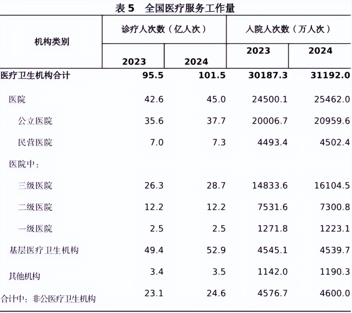 我国优质医疗资源过度集中于大城市三甲医院,而中层和基层医疗机构服务能力薄弱,城乡、区域差距明显,容易导致患者无序就医,大医院人满为患,基层资源闲置。根据2024年数据,仅有三级医院的入院人数显著提升,一二级以及基层机构的入院人数均有不同程度的萎缩。