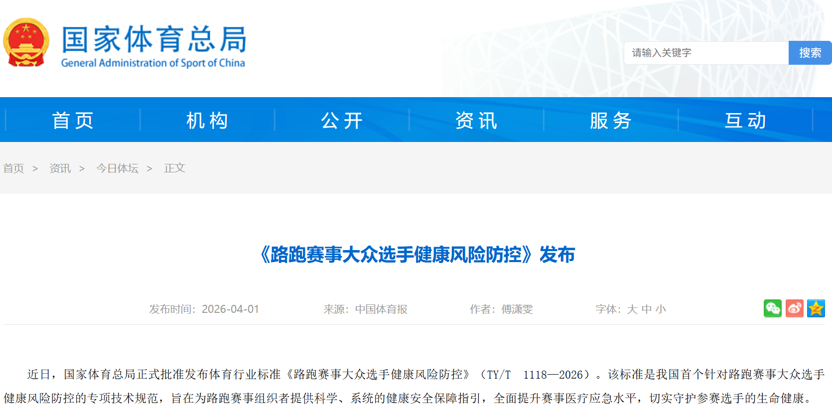 4 月 1 日、4 月 4 日,国家体育总局、中国田径协会接连发布重磅新政,出台我国首个路跑健康专项标准与安全保障通知,全面补齐行业安全短板,标志路跑行业正式进入 “安全规范元年”。